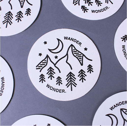 These coasters were a fun exploration into letterpress printing. Although in most printing the goal is to have as polished a look as possible, letterpress printing allows for a little more personality with its slightly uneven inking and tactile feel from being pressed. I decided to mirror this personality in my design. The illustration and letters reference cartoon style illustrations with their rounded edges, and the wording choice of "Wander. Wonder." came from a folk song by The Arcadian Wild.